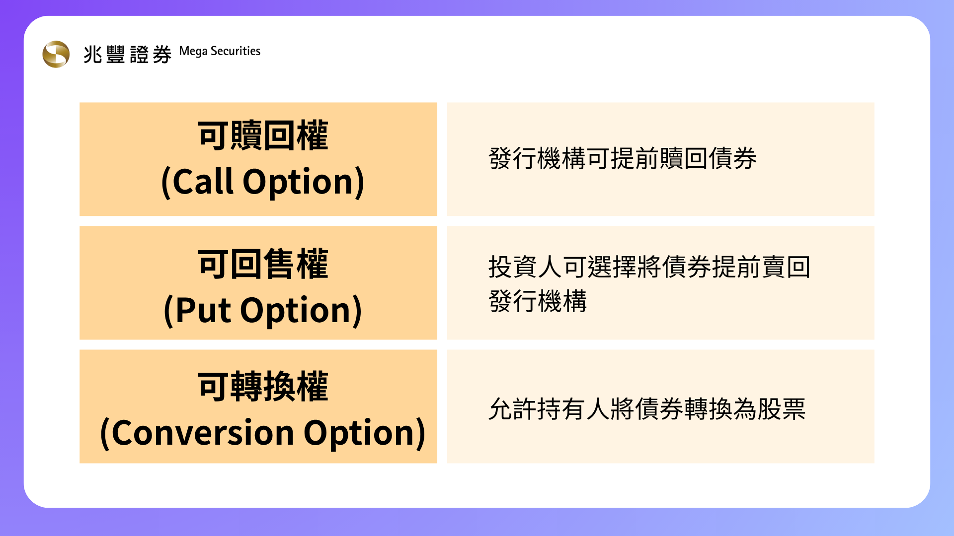 賦予持有人將債券轉換為發行公司股票的權利。這類債券通常具有較低的票面利率,因為投資人
