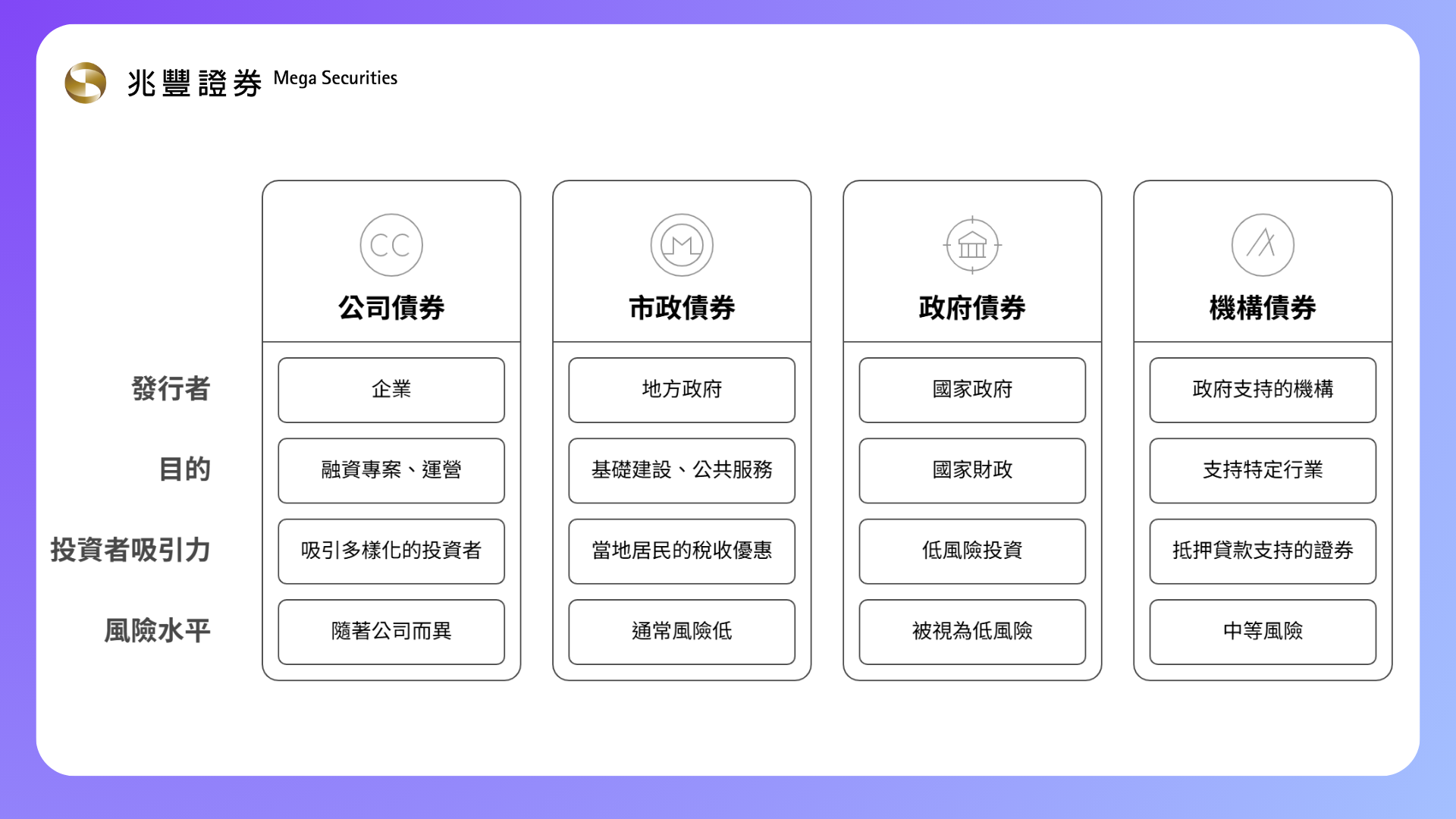 市場上的債券可依發行機構的性質區分為四大類