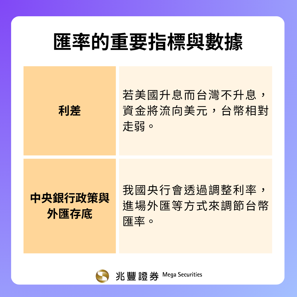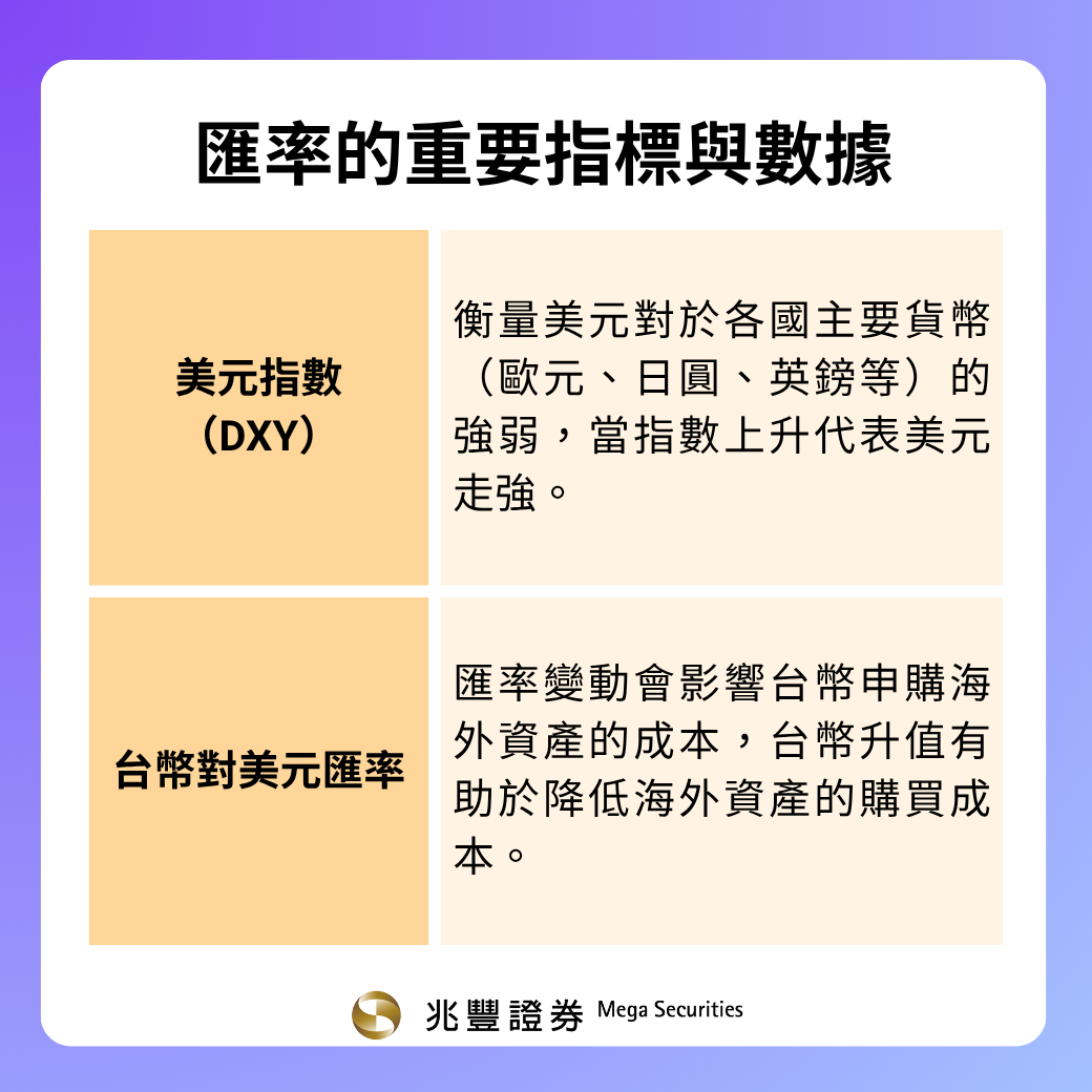 投資人若能掌握以下匯率指標與數據,可以更好地掌握投資時機,調節投資策略,避免匯率對獲利的侵蝕,甚至有機會可以獲取未來匯差收益。