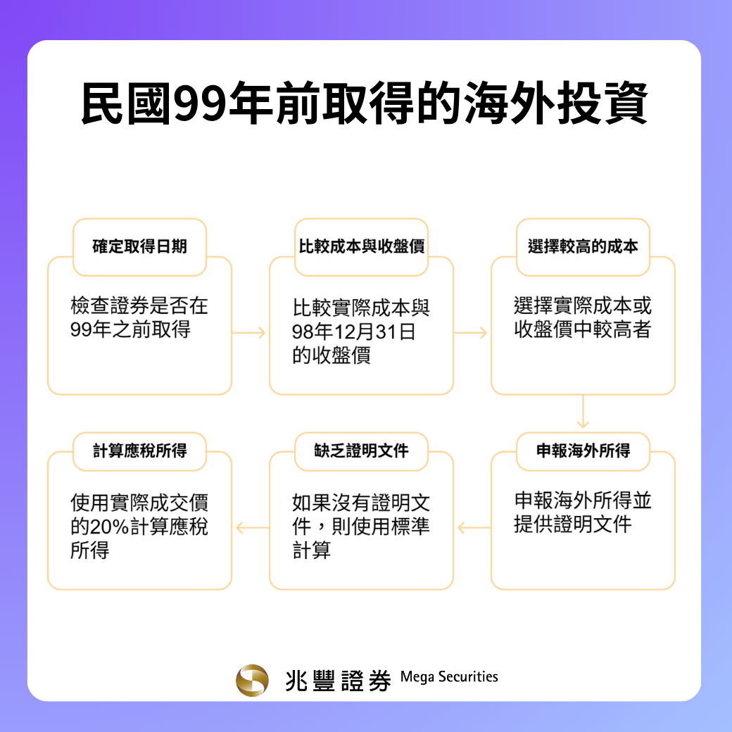 ,然而台灣有非常多的投資大眾早在此之前就經常的進行海外投資,面對投入日期在99年以前的海外投資,在計算個人海外所得時會有哪些不同之處呢?