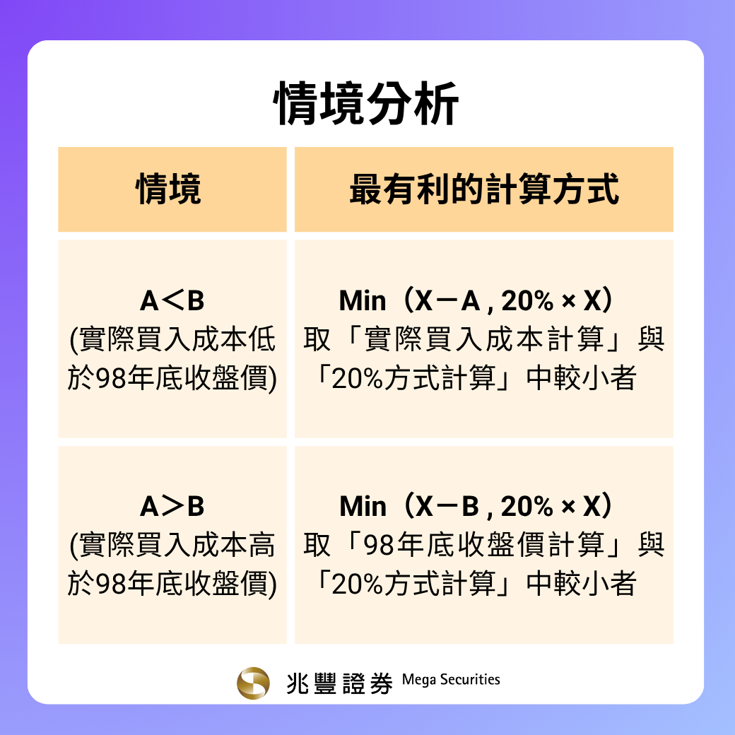 投資人可以透過下圖的情境分析,選擇對自己最有利的所得計算方法: