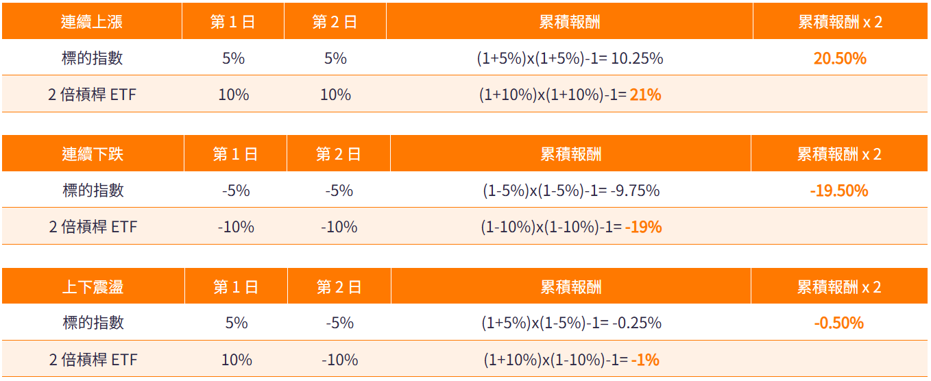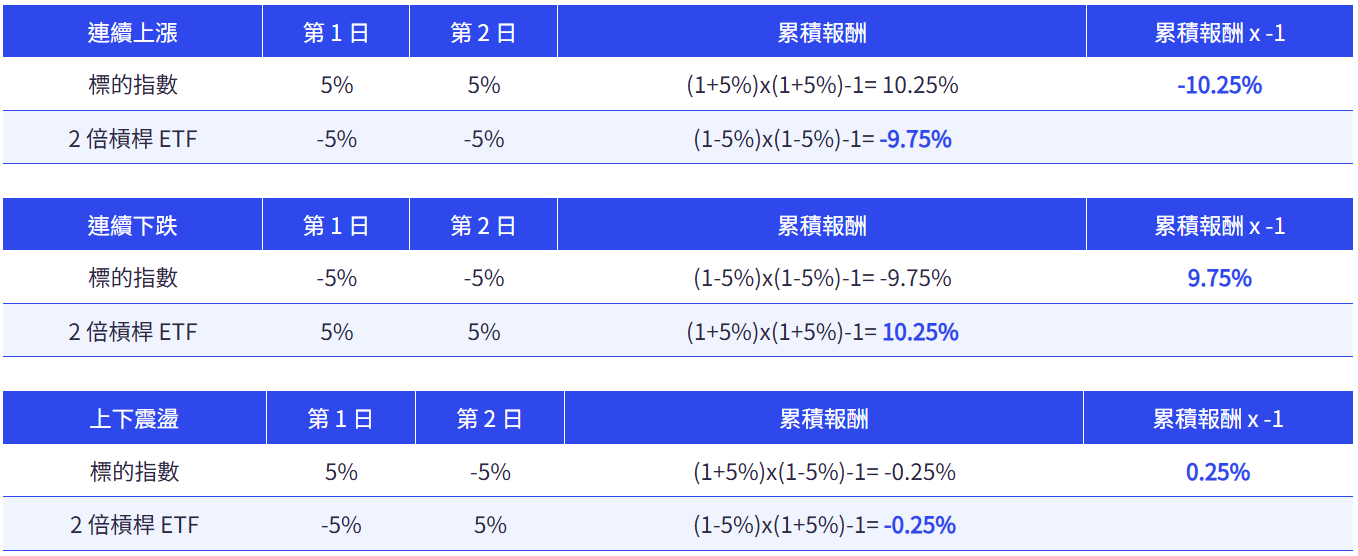 資料來源:元大投信。槓桿型或反向型期貨ETF不適合追求長期投資且不熟悉槓桿型或反向型期貨ETF以追求單日報酬為投資目標之投資人。投資人交易前,應詳閱基金公開說明書並確定已充分瞭解槓桿型或反向型期貨ETF之風險及特性。