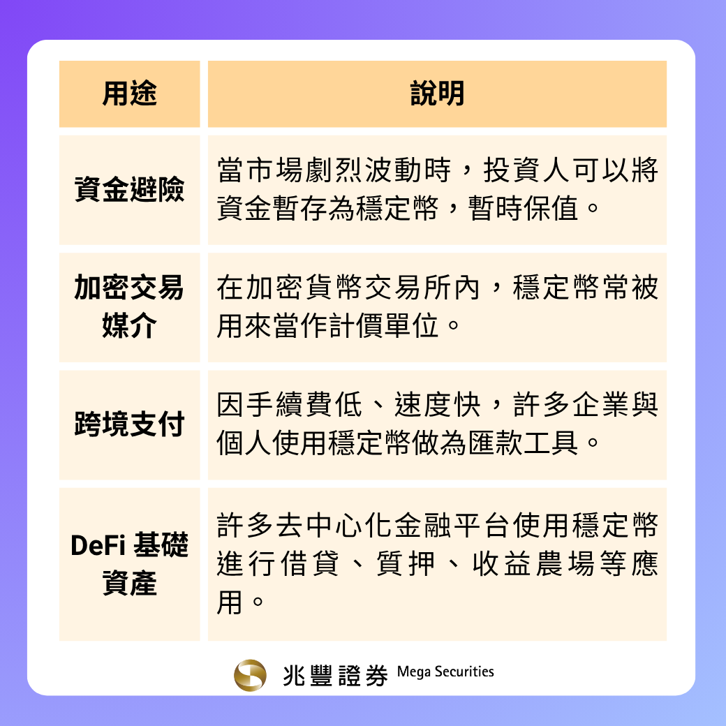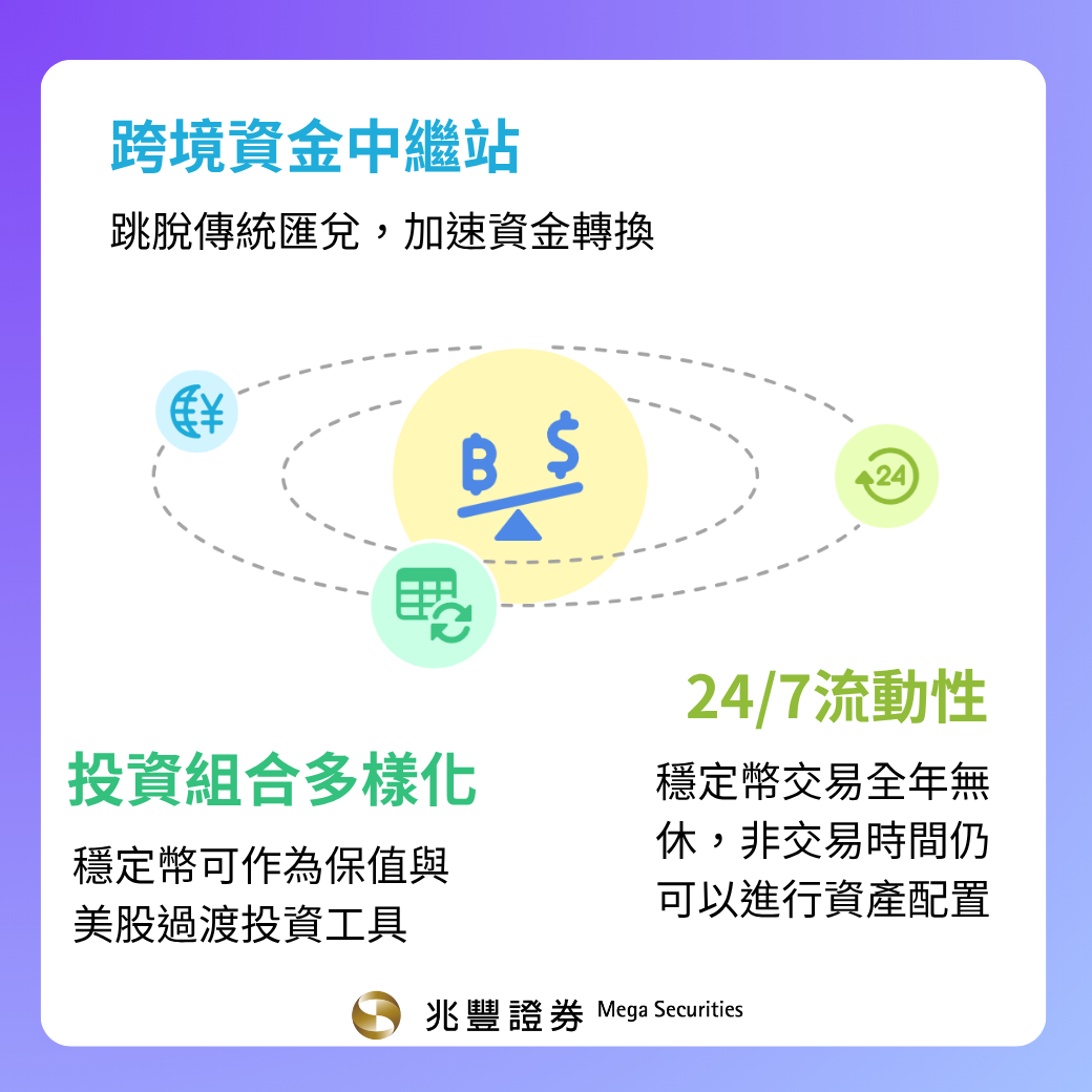 注意:兆豐證券複委託僅提供「穩定幣發行商股票」、「虛擬資產ETF」交易,無提供穩定幣相關交易;其中「虛擬資產ETF商品」,須具備專業投資人資格方可交易,部分標的須具備高資產或專業機構投資人資格,相關訊息可至以下網址詳閱https://www.emega.com.tw/emegaAbroad/bulletin.do?id=20250415135056763425,或洽所屬營業員諮詢。