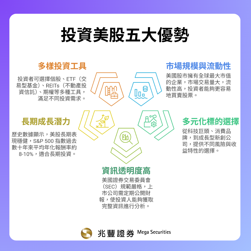 美國股市是全球規模最大、最具流動性的資本市場之一,吸引了來自世界各地的投資者。以下是投資美股的幾項主要優勢: