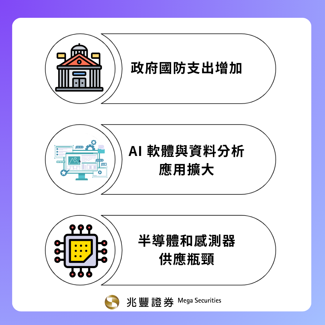 長期而言,隨著美國透過 CHIPS 法案及 Microelectronics Commons 計畫加強國內晶片供應,美國AI 軍工產業有望受益於更穩健的供應鏈及政府支出的持續支持。