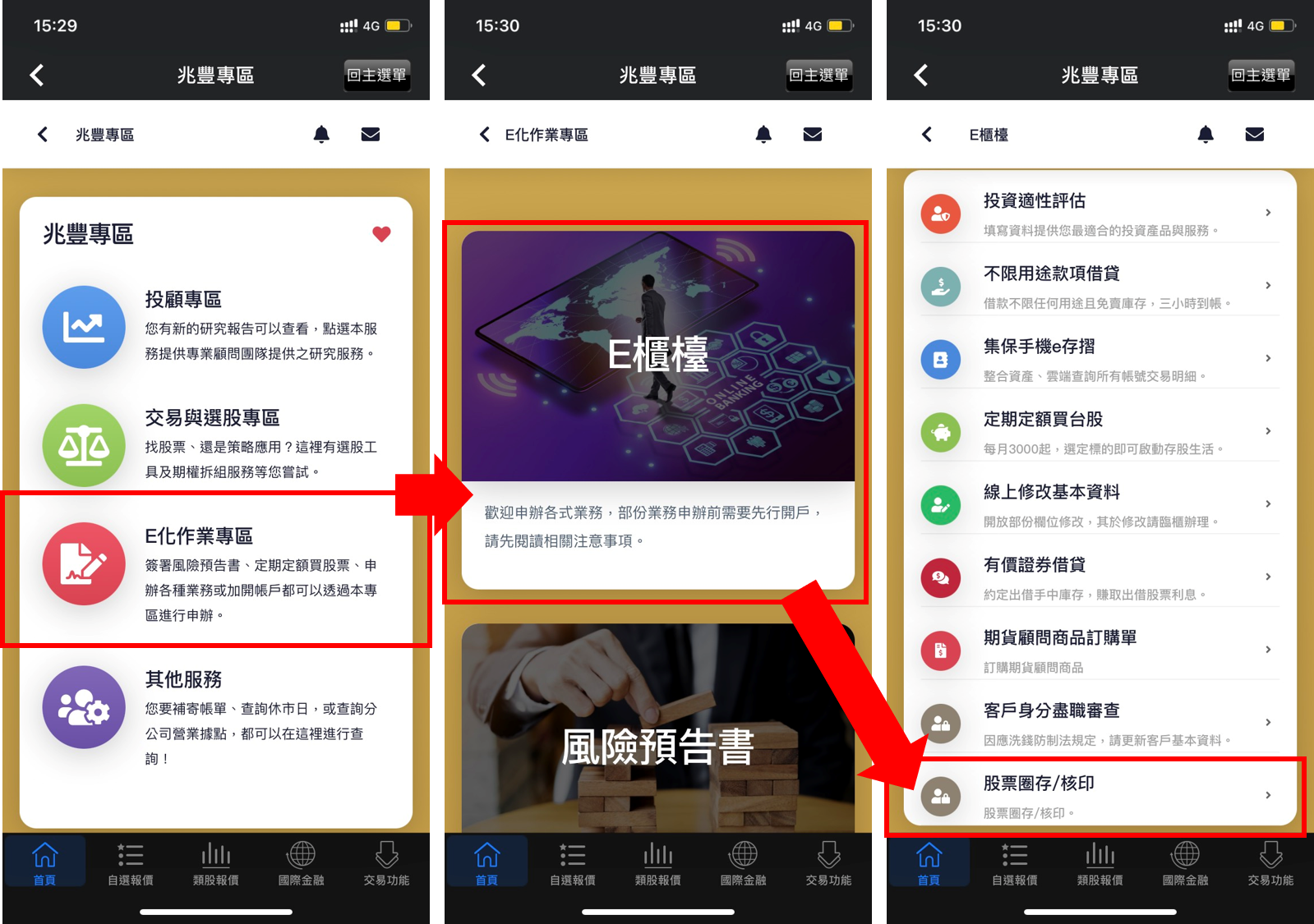 行動VIP股票圈存/核印路徑