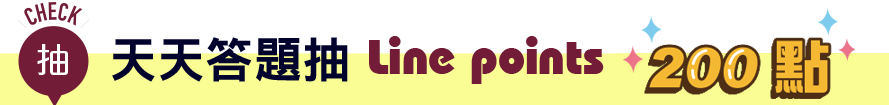 活動期間報名參加「挑戰答題」活動,天天挑戰答題天天可獲得抽獎機會,將於活動結束抽出100位 Line points200 點之幸運得獎者。