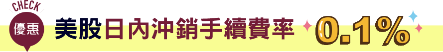 海外股票交易客戶於活動期間皆享美股日內沖銷手續費率0.1%優惠(每筆交易最低手續費收取10美元)。