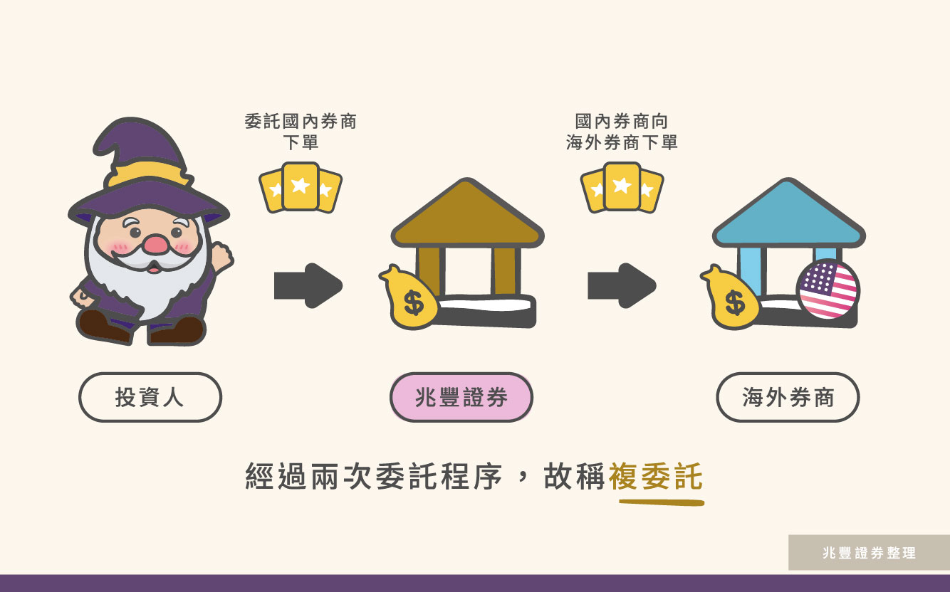 複委託正式名稱為「受託買賣外國有價證券業務」,委託國內券商作為中介機構,協助下單買賣海外股票。所以投資人可以到具備「海外券商複委託資格」的國內券商開立複委託帳戶,就可以透過國內券商下單買賣海外有價證券囉!