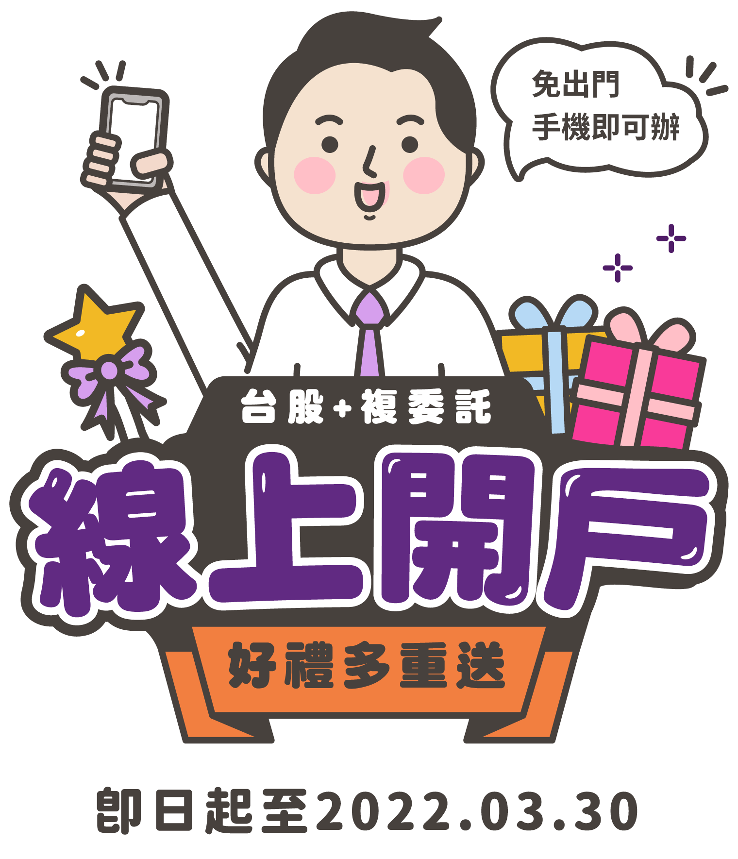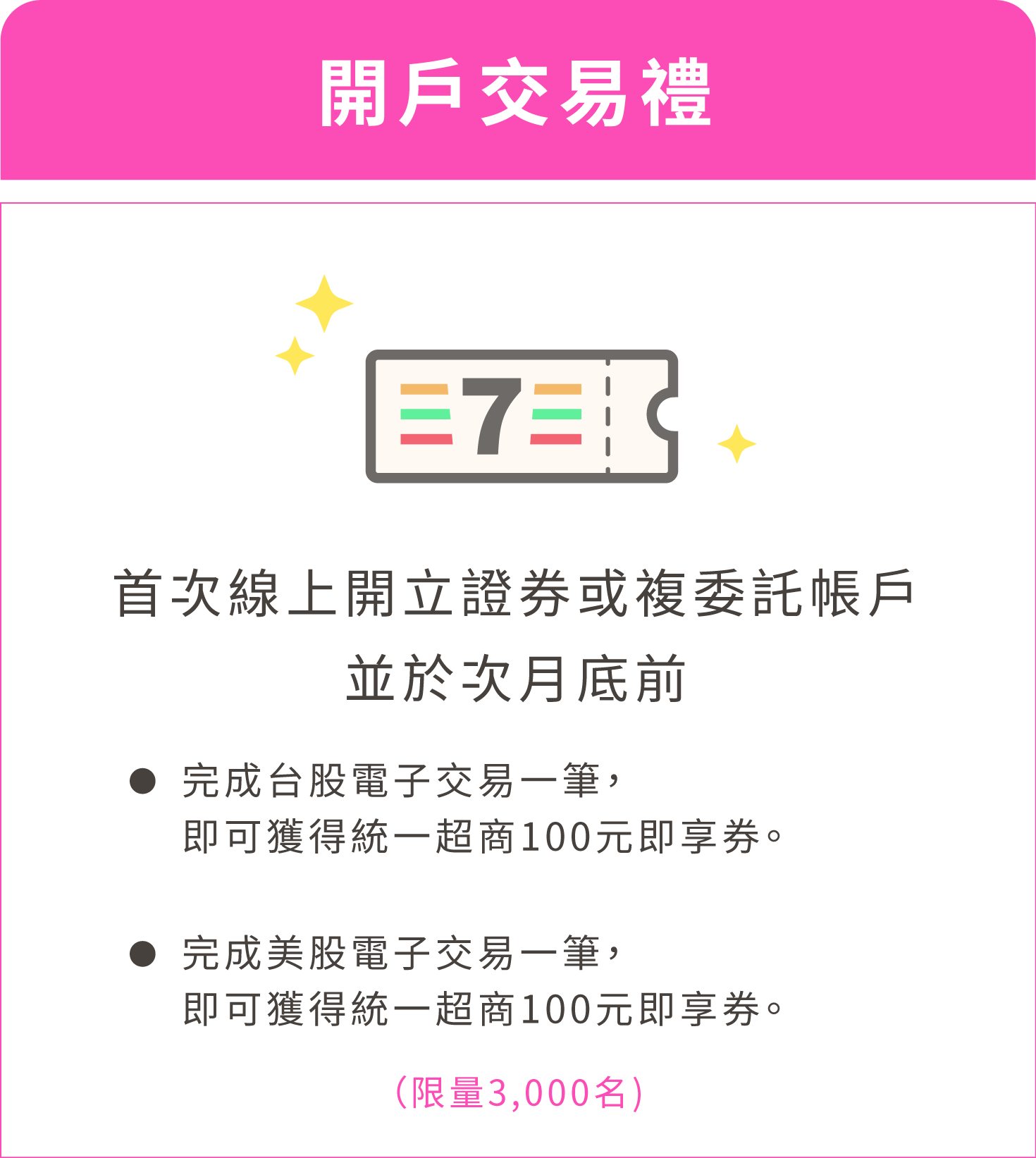 所有活動內容之「開戶成功」係指經本公司審核完成之「證券戶或複委託開戶成功日」,非資料申請送出日。