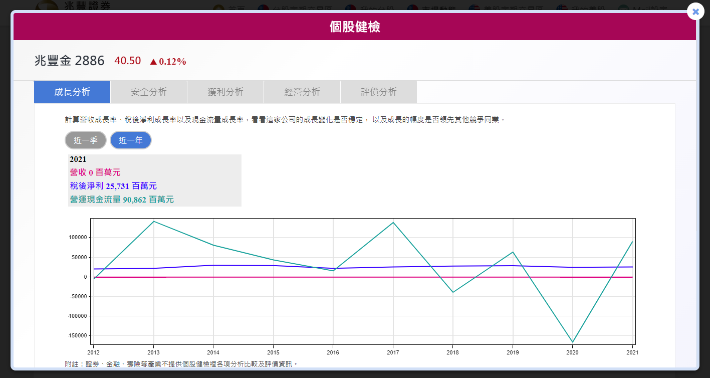 透過個股健檢,隨時查閱個股成長、安全、獲利、經營、評價等分析內容(限台股)。