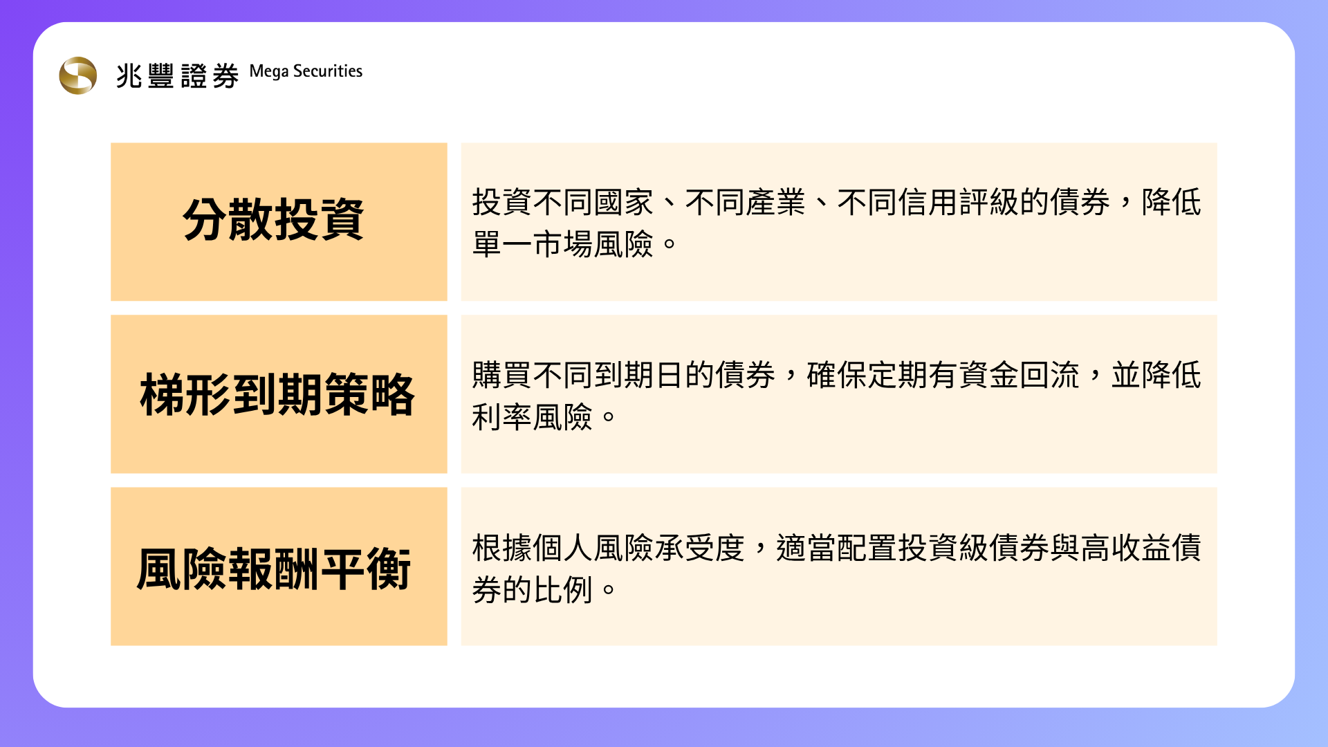 健與多元化投資組合的投資人而言。相較於波動較大的股票,債券因其固定收益的特性,能提供以下優勢,並有效分散整體投資風險。